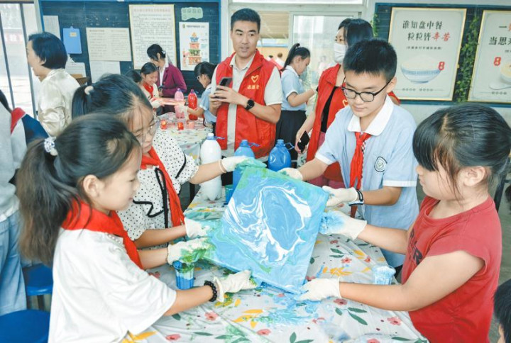两校学生在“流动的魔法”流体画课堂共同探索艺术魅力