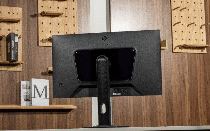 在安装方面,HKC GS27QES采用了免工具的快速拆装设计:底座与立柱通过手拧螺丝固定,随后将立柱顶端的快拆模块对准显示器背部的VESA接口区域轻轻一扣即可锁定。整个安装过程单人即可轻松完成。
