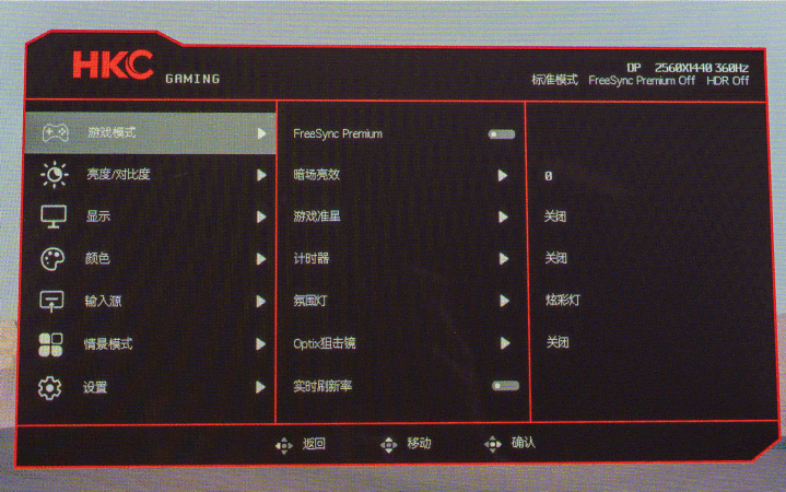 一款优秀的显示器,其OSD菜单的设计和功能性同样至关重要,直接影响着用户调节参数时的便捷程度。HKC GS27QES在这方面选择了实用至上的方案。