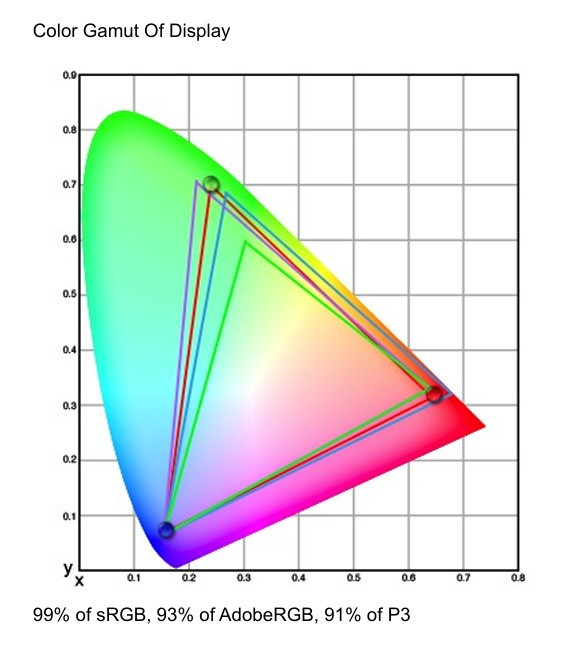 首先在色域方面,HKC GS27QES的表现堪称优秀,实测数据显示它实现了100%的sRGB、99%的DCI-P3以及95%的Adobe RGB色域覆盖,证明其几乎能完整显示不同色域标准下的所有色彩。