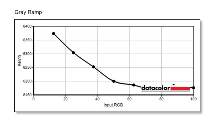 而在灰阶表现方面,实测HKC GS27QES的灰阶色温也表现稳定,在6175K至6375K之间平滑波动,整体表现稳定。