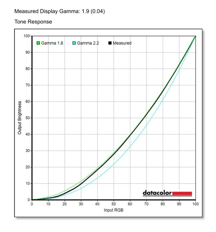 在伽马曲线测试中,在伽马曲线测试中,HKC GS27QES的实测值为1.9,相较于更为通用的Gamma 2.2标准,1.9的曲线会使画面中间色调略微偏亮。不过从图表中的曲线可以看出,整体过渡平滑,灰阶表现稳定。