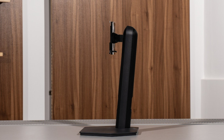 让我们先从支架看起。作为除屏幕外,用户与显示器交互最为频繁的组件,支架的设计至关重要。而HKC GS27QES的支架设计相当优秀,它提供了约 130mm的高低升降、±20°的左右旋转、-5°~+20°的俯仰调节以及顺时针90°的垂直旋转,足以满足任何坐姿下的舒适观看需求。