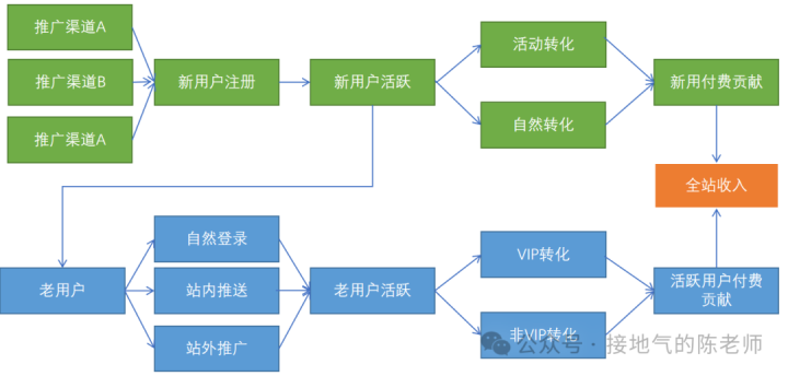 梳理清楚后,当用户转化出现问题,先看用户问题来自新用户/老用户,如果是新用户问题更大,则排查广告推广效率。如果是老用户问题大,先看是否活跃率就有问题,判断是否需要做大面积召回,再看是高中低哪个层级的问题,结合消费需求思考对策。