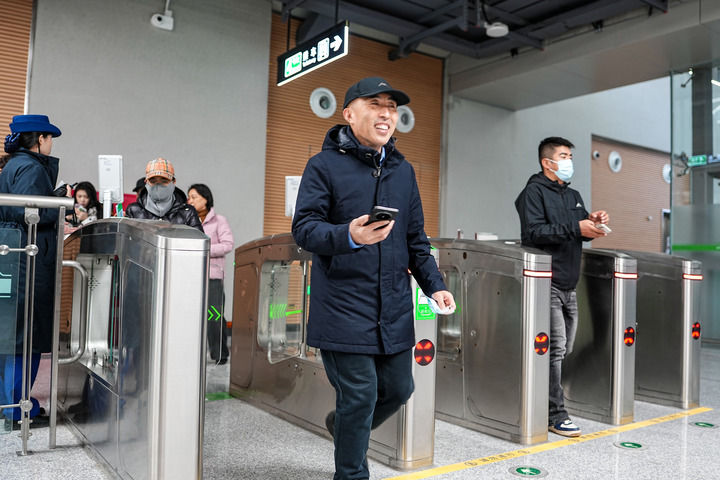 2025年12月27日,参与建设的中铁十四局职工代表体验济南轨道交通4号线。新华社记者 朱峥 摄