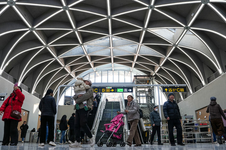 2025年12月27日,市民在济南轨道交通4号线泉城公园站进站乘车。新华社记者 朱峥 摄