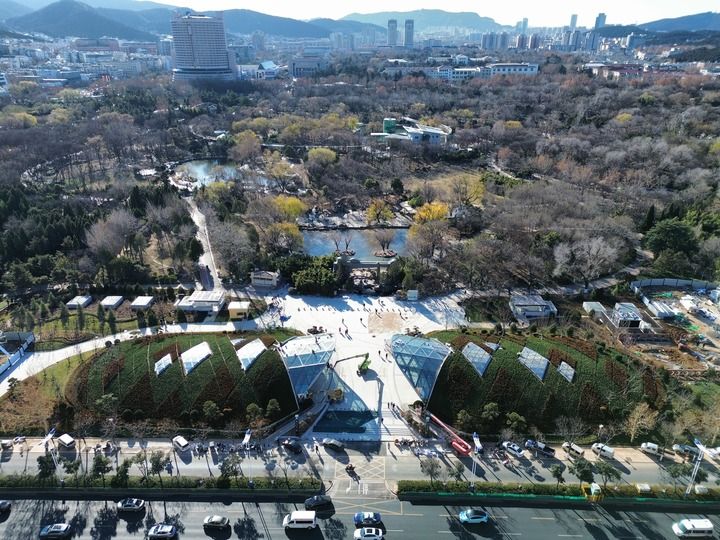 这是2025年12月25日拍摄的济南轨道交通4号线泉城公园站(无人机照片)。新华社记者 朱峥 摄