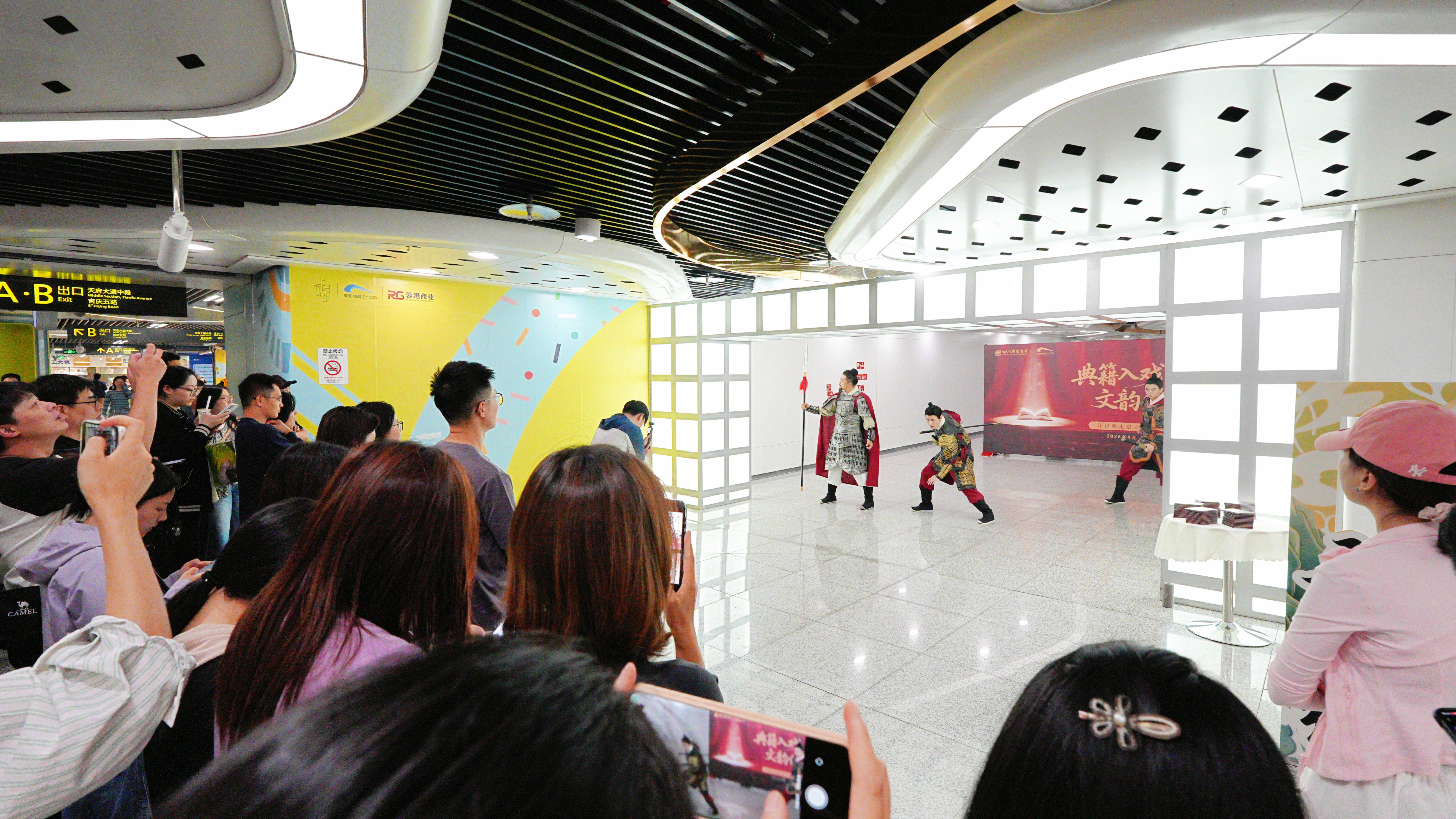 当《三国》里姜维的忠勇故事在地铁站厅唱响,当通勤乘客成为快乐补给的主角,4月20日,在全国首个“全民阅读活动周”启幕之际,四川省图书馆将《三国·忠勇姜维》音乐戏剧快闪引入地铁站厅。